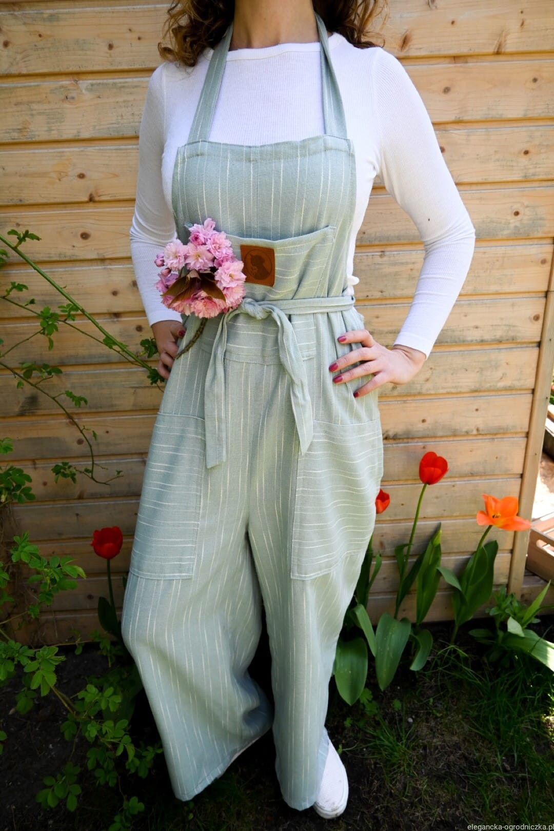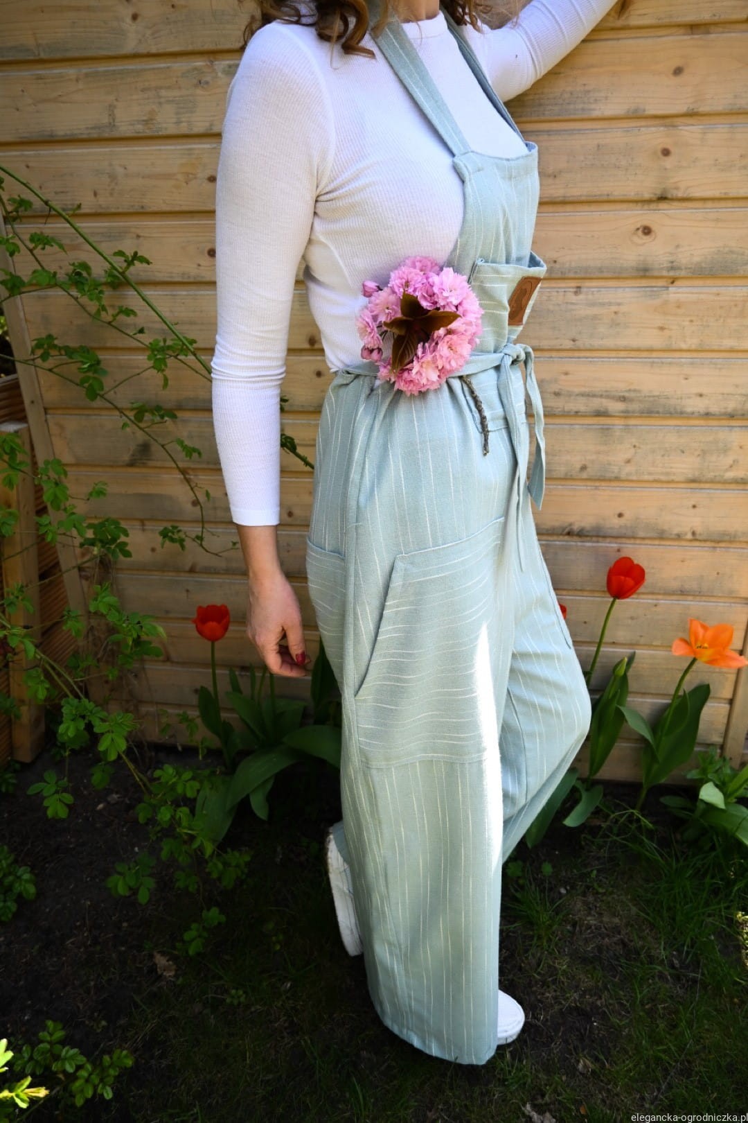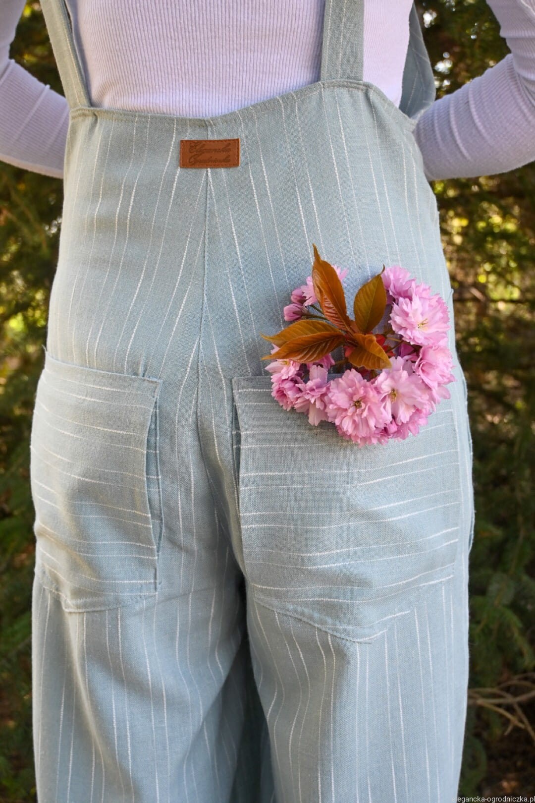 Wykonane z przewiewnej wiskozy z szerokimi nogawkami w błękitnym kolorze. Możliwość zawiązania na karku i w pasie lub klasycznie na ramionach.