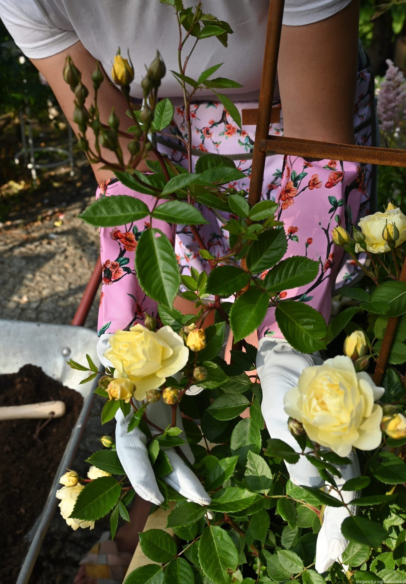 Rękawice przeznaczone do przycinania i pielęgnacji roślin kolczastych róż, berberysów, krzewów agrestu czy jeżyny. Wykonane z wysokiej jakości koziej skóry wystarczająco grubej aby chronić dłonie przed ukłuciem ale jednocześnie nie ograniczającej ruchów dłoni w czasie pracy. Mankiet chroni również przedramię co jest bardzo przydatne przy ,,prześwietlaniu" większych krzewów.
